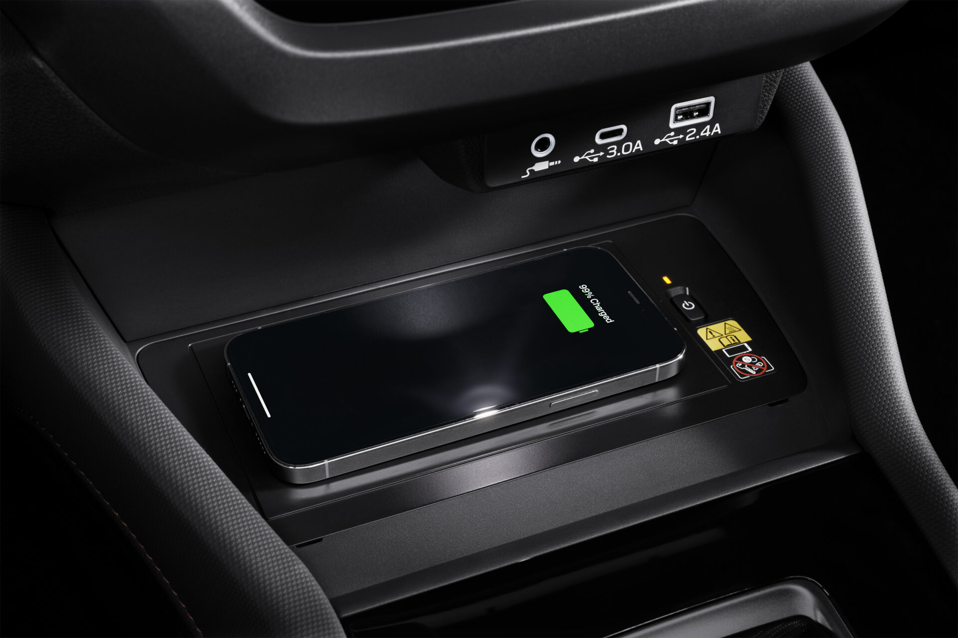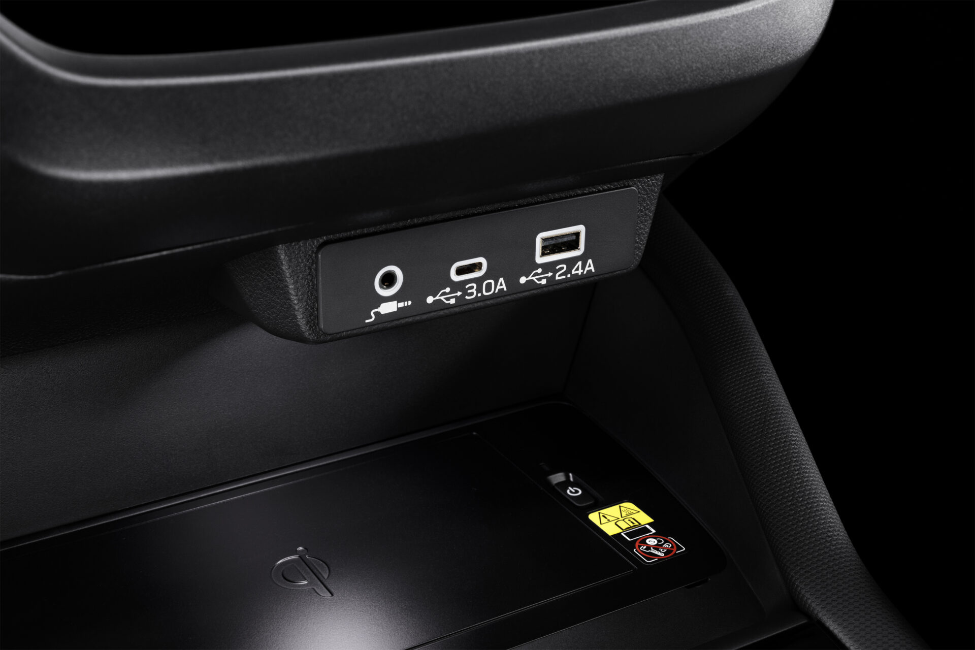 Carica il tuo smartphone o altri dispositivi elettronici compatibili con Qi. Posizionato nel vassoio centrale del cruscotto, facile da raggiungere, fornisce fino a 10W di potenza per una ricarica rapida.