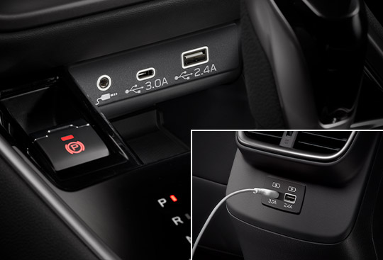 Collega il tuo dispositivo alle porte USB anteriori per ascoltare la tua musica preferita attraverso il sistema audio. Per i passeggeri dei sedili posteriori la Outback presenta pratiche porte USB di ricarica dietro la consolle centrale, per affrontare ogni avventura con tutta l’energia necessaria.