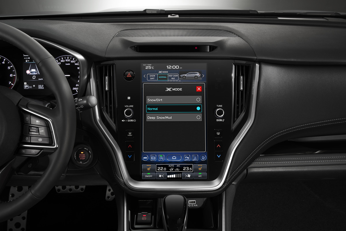 La nuova versione di X-MODE, di serie su tutti gli allestimenti, ti permette di sfruttare al massimo le capacità della nuova Outback. Attraverso il display touchscreen, puoi selezionare la modalità [SNOW/DIRT] per affrontare superfici scivolose o [D.SNOW/MUD] per terreni più impegnativi, dove il rischio di restare bloccati è maggiore.